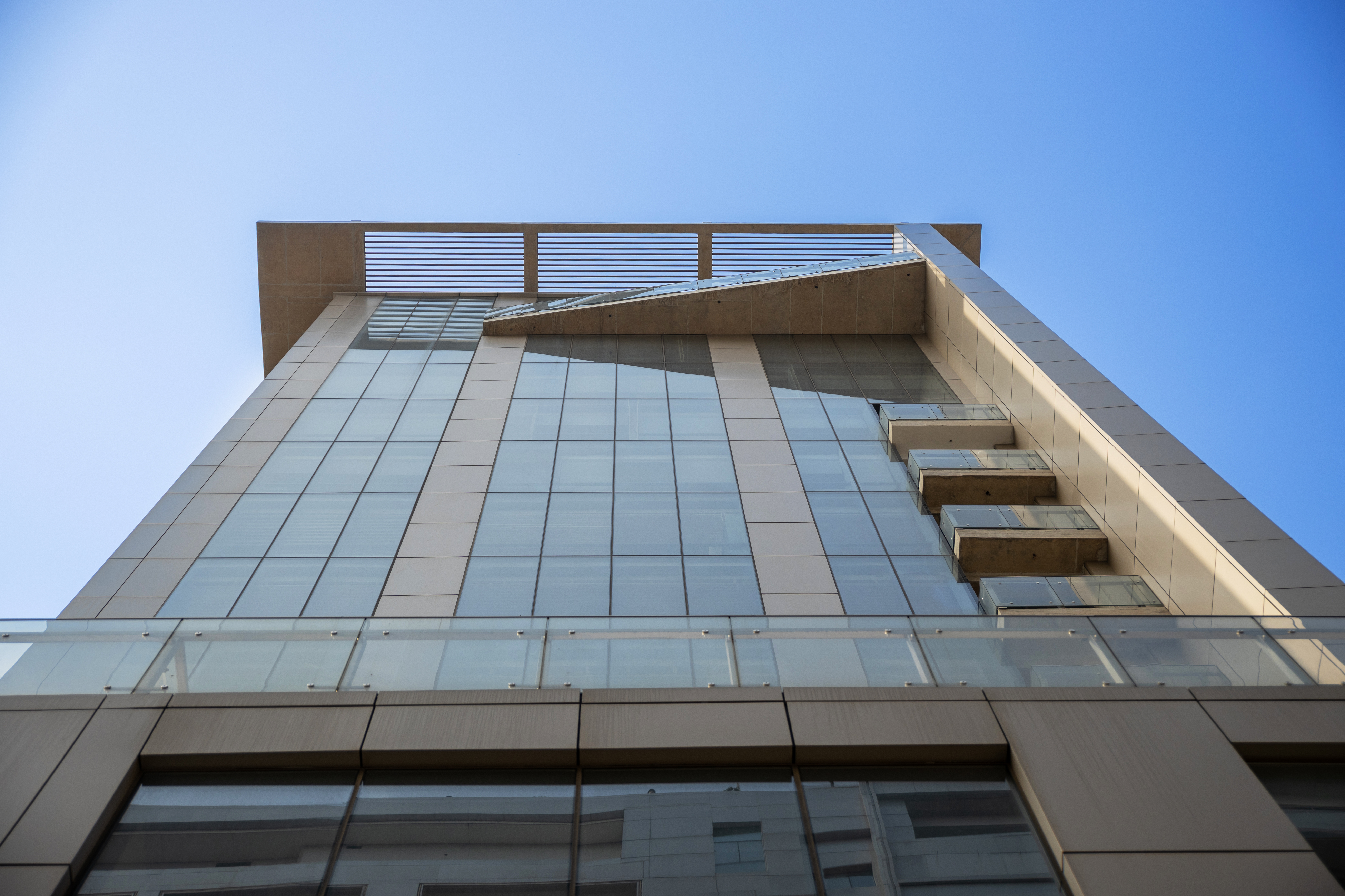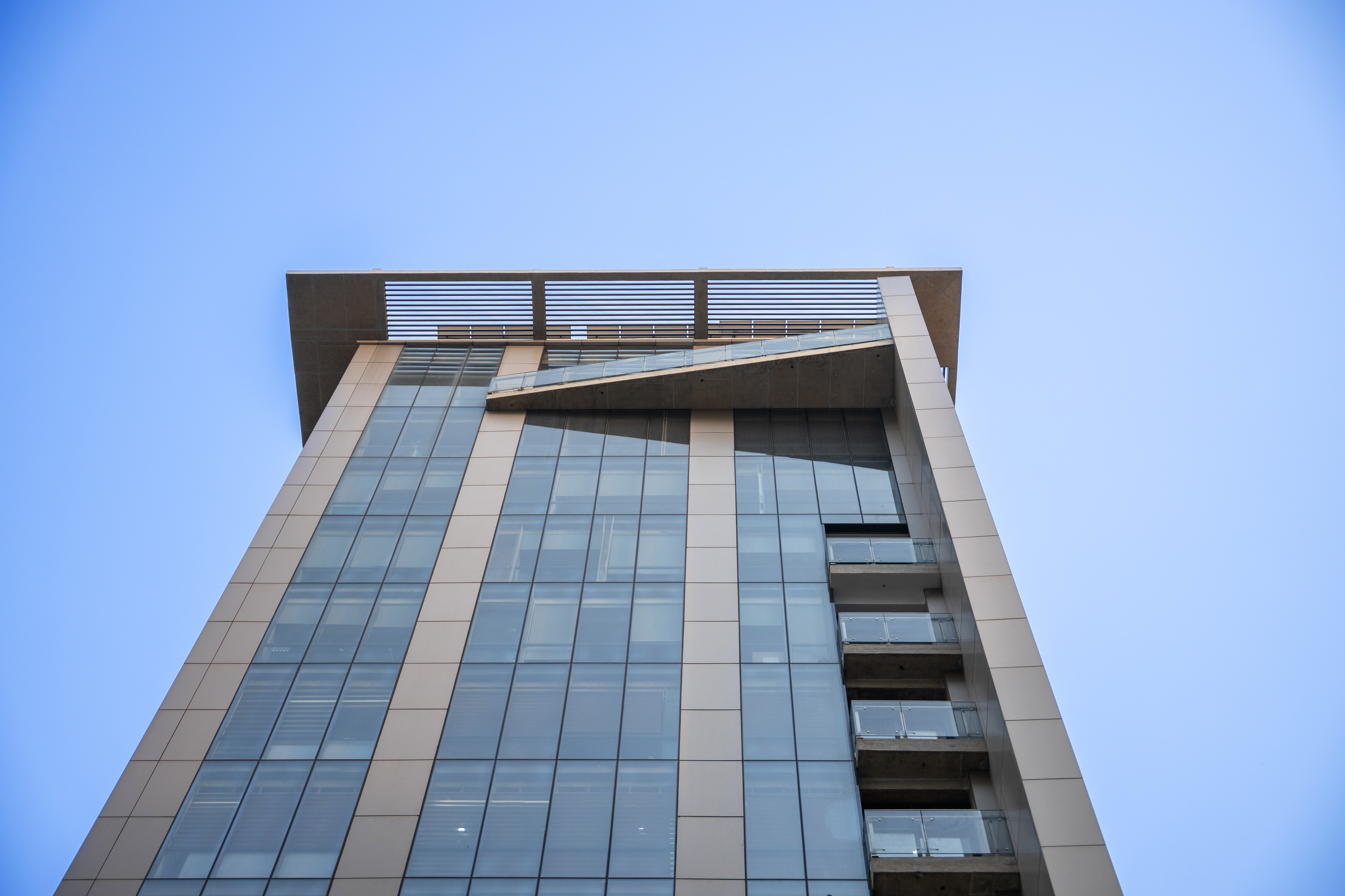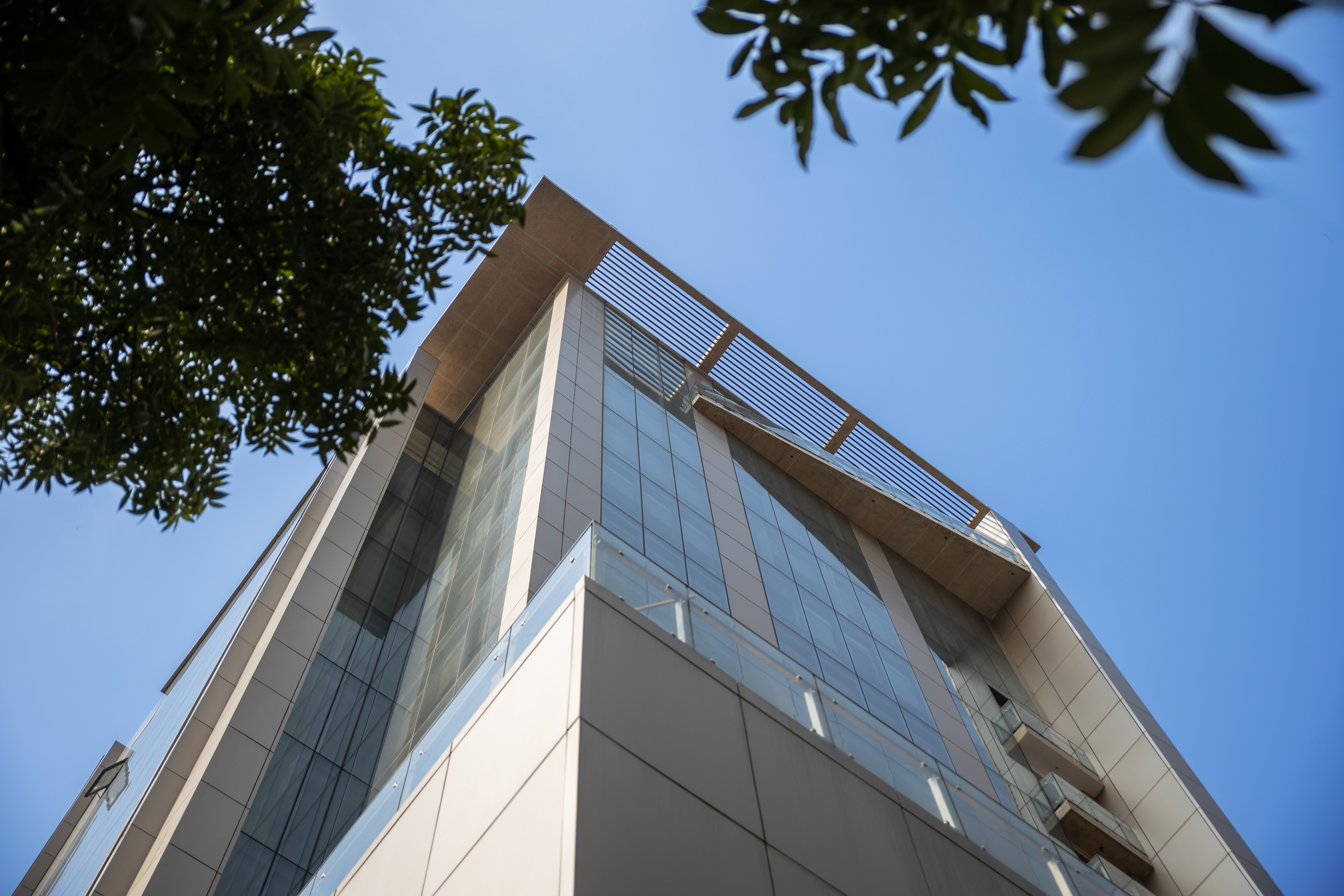 The project is located on a corner plot on the Sunvalley Sharoni, designed to stand as a landmark that expresses its gratitude in its formal expression, with a site and climate responsive design.