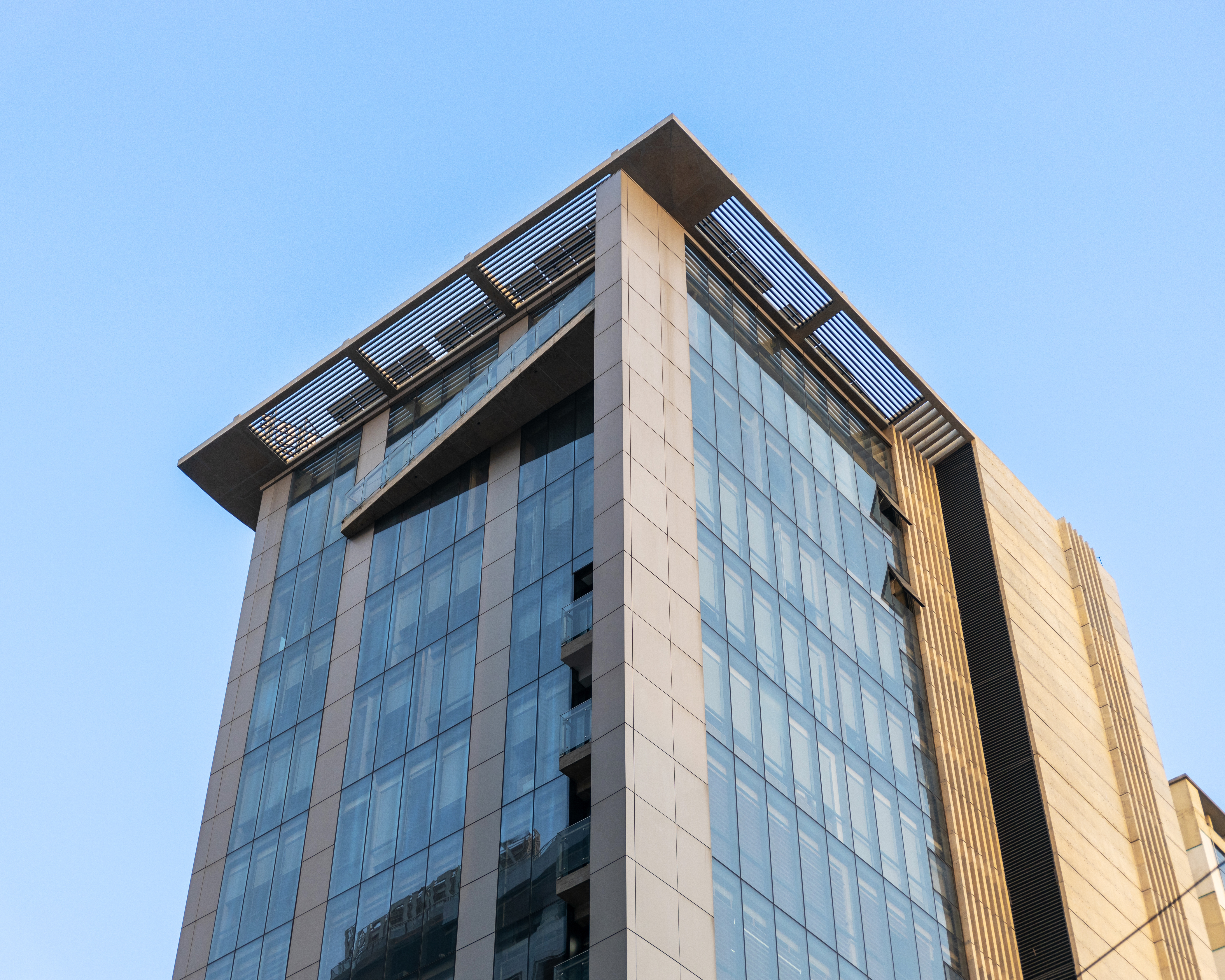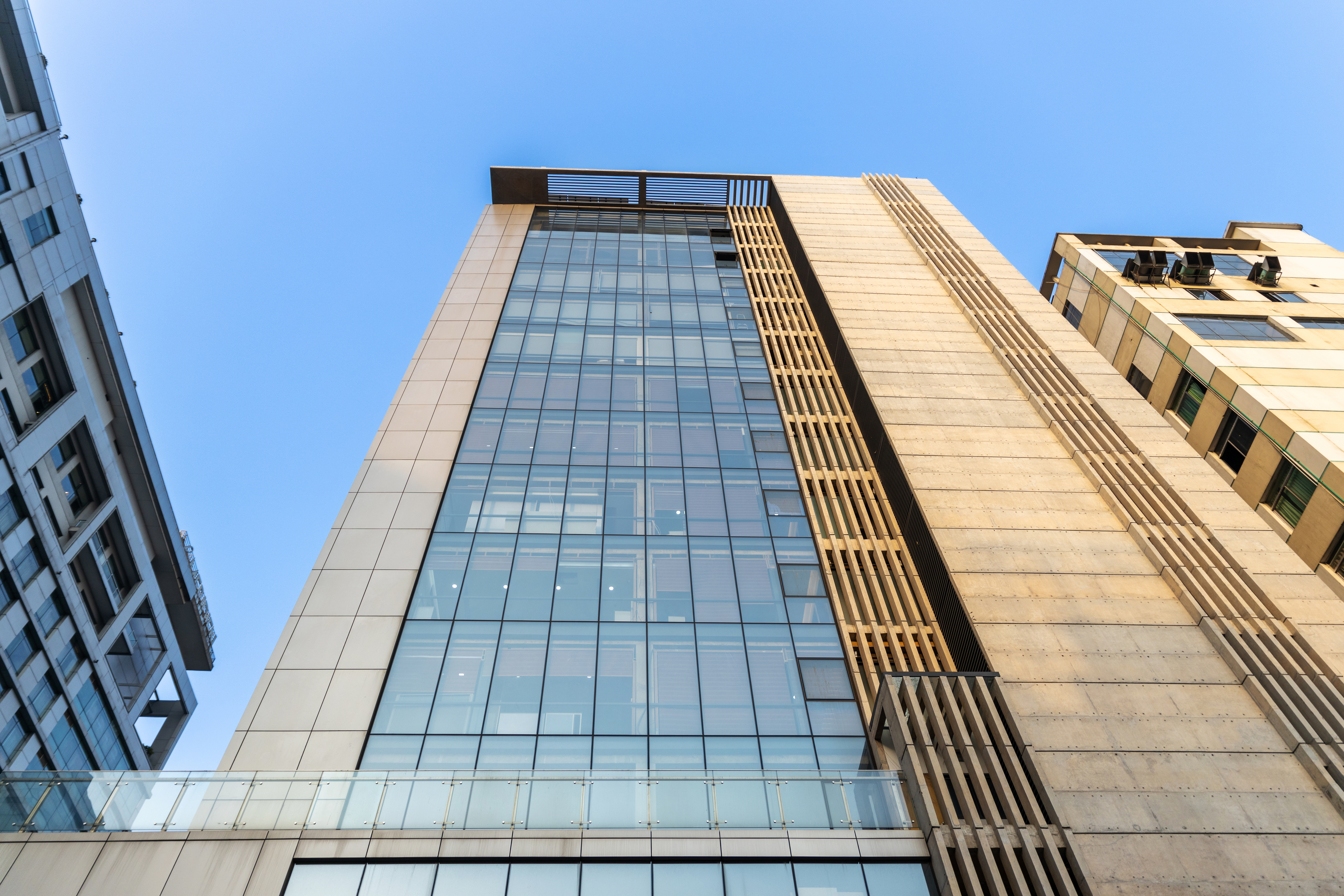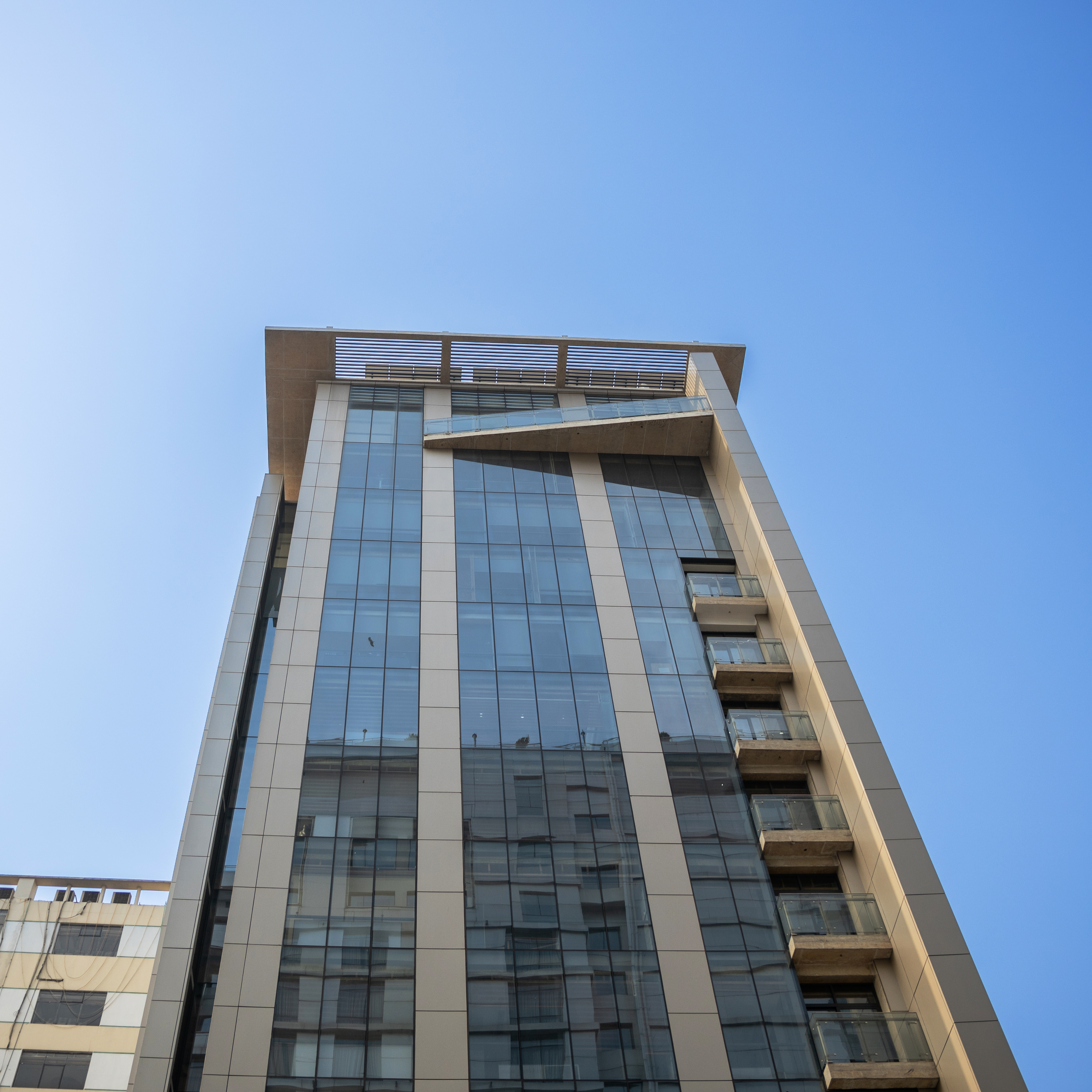 The project is located on a corner plot on the Sunvalley Sharoni, designed to stand as a landmark that expresses its gratitude in its formal expression, with a site and climate responsive design.