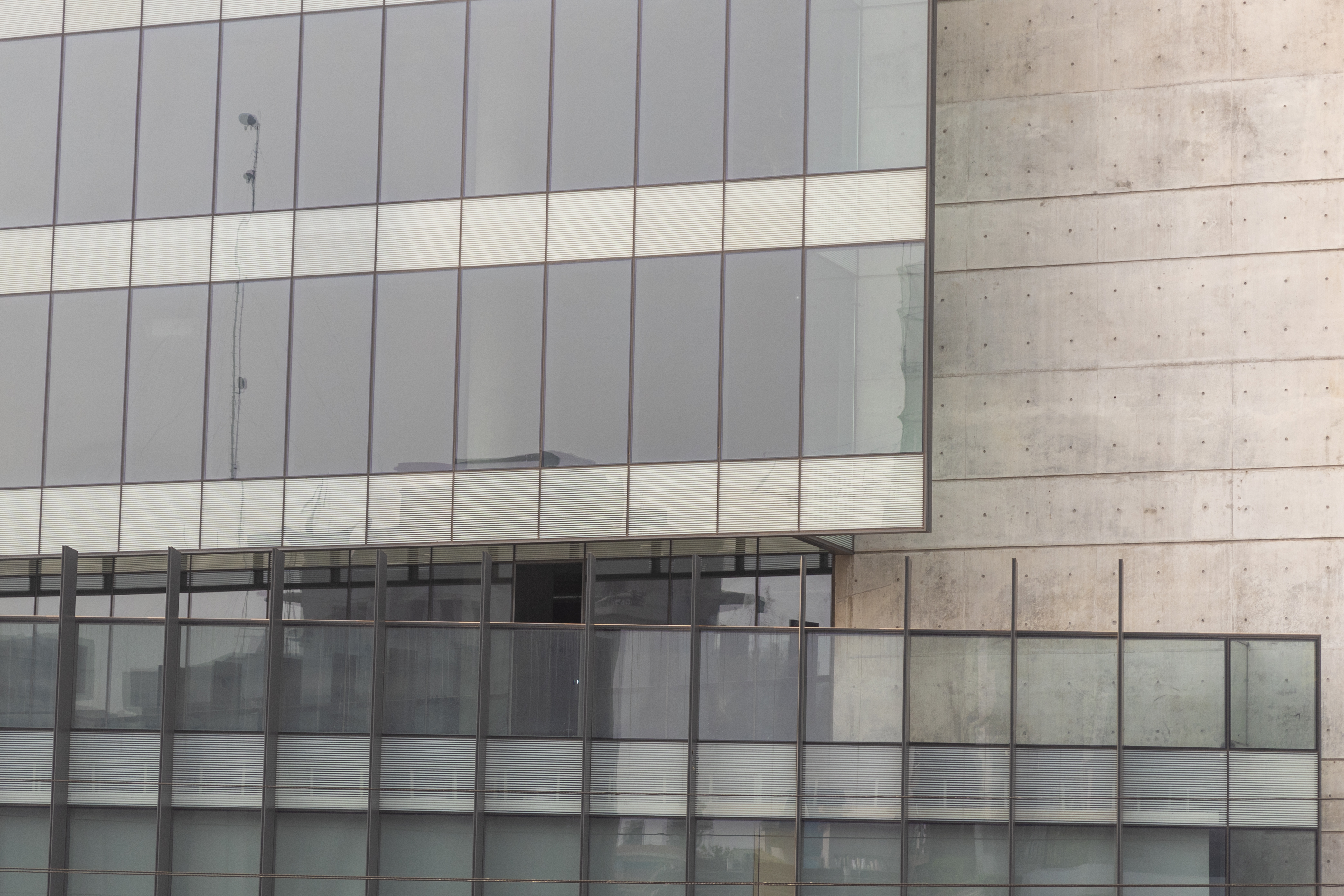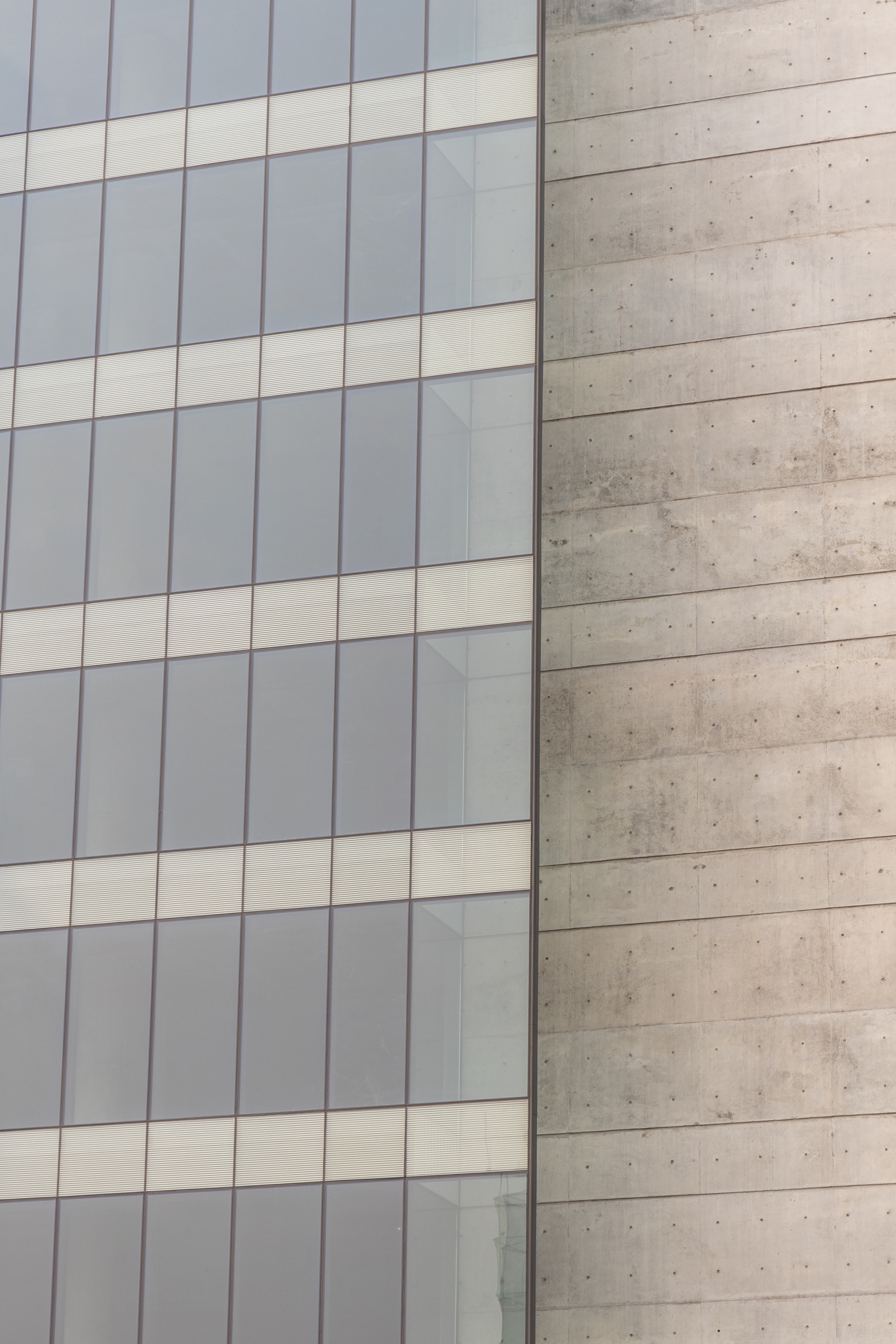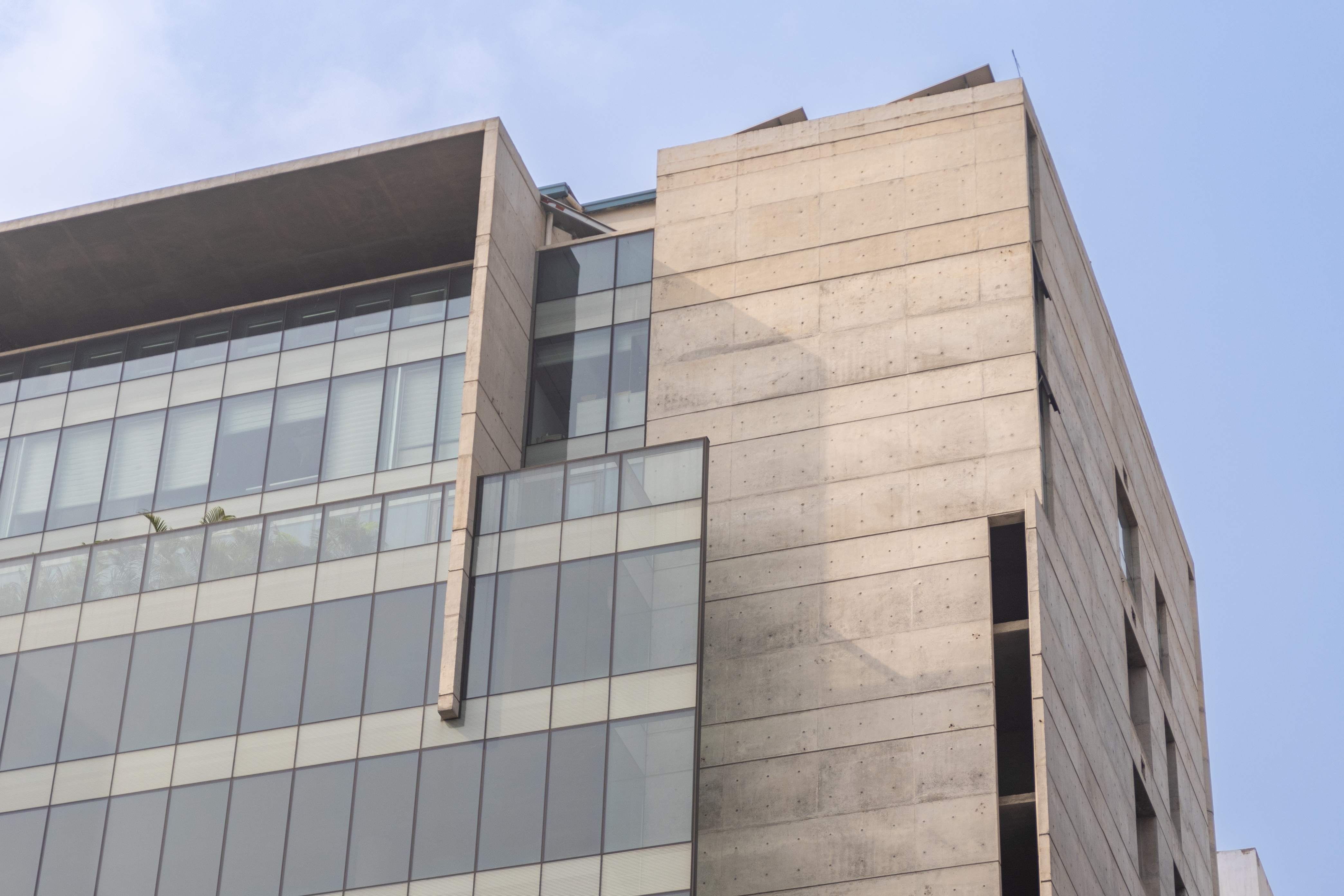 Approached the main thoroughfare, the form seems to be a play of planes layered within. A hierarchy of tactility expresses itself in these planes, beginning with a concrete plate that folds at the crown, and followed within with planes of glass and louvered screens that fold at intervals.